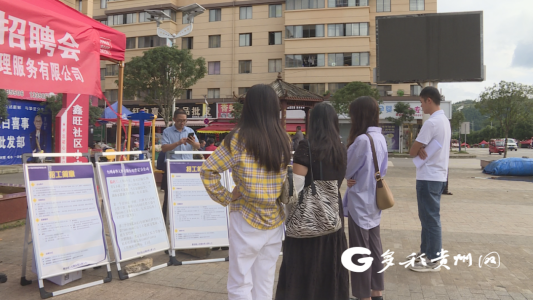 招聘会上,来自普定县各地的求职者通过阅读宣传展板、与企业工作人员现场沟通的方式,了解到企业概况、岗位需求和职业发展等情况,匹配到适合自己的工作岗位。