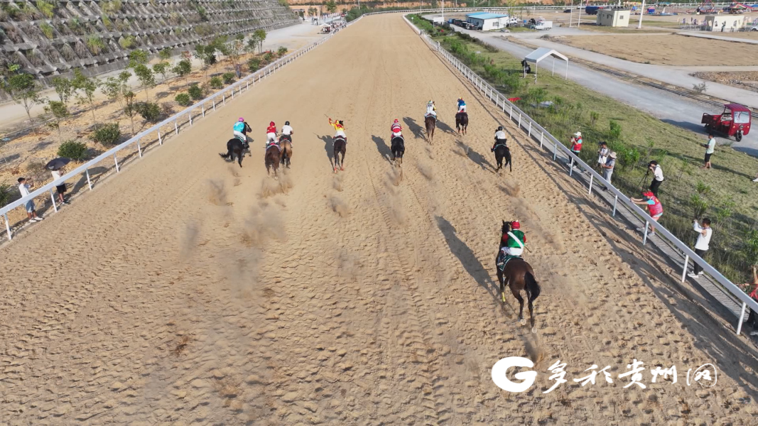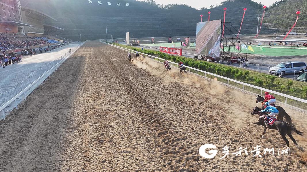 在三都县中国西部赛马场,一声令下,起跑闸门打开,12匹马儿在骑手的控制下,同时发力,如离弦之箭,奋力奔赴前方,你追我赶,不甘示弱,赛道尘沙飞扬。赛事过程不断涌现后马超越前马,扣人心弦,精彩的赛事赢得阵阵掌声和欢呼声,大家纷纷拿出手机拍照记录这一盛况。