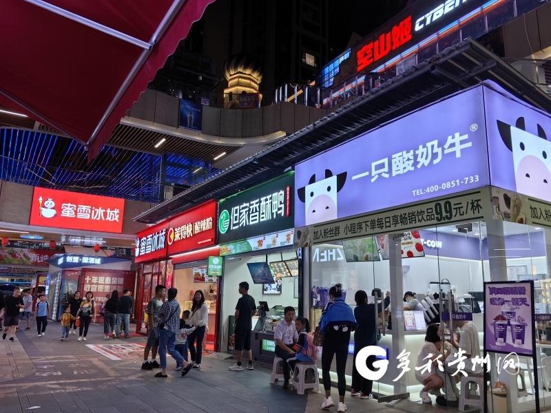 走进国酒城购物公园,国际连锁酒店品牌铂尔曼、知名餐饮品牌麦当劳、影院专业运营商横店电影城特色店铺随处可见,近百家品牌餐饮、地方小吃、夜宵夜市餐企商家入驻国酒城购物广场,流光溢彩的城市夜景和丰富的夜间经济消费业态,吸引了大批市民前来消费。“国酒城离我家比较近,晚饭吃了都会带小孩过来玩耍,这里吃的玩的都很齐全,可以陪孩子坐游玩车、玩蹦床等体验感很好。”仁怀市民胡小娟说。