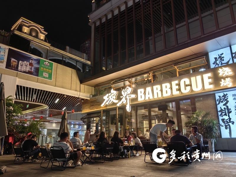 暮色四合,宵夜登场,在国酒城美食街,早已是高朋满座。店铺内各种滋滋冒油、热辣滚烫的食物散发着诱人的香气。门外,忙碌一天的人们聚在一起,点一桌烧烤,一杯啤酒下肚,众人大快朵颐,所有的疲惫都一扫而空。“来到国酒城非常的满意,这里是集吃喝玩乐于一体的,特别是这家烧烤店,环境不错、氛围也好,菜品味道也好吃。”仁怀市民刘钊说。