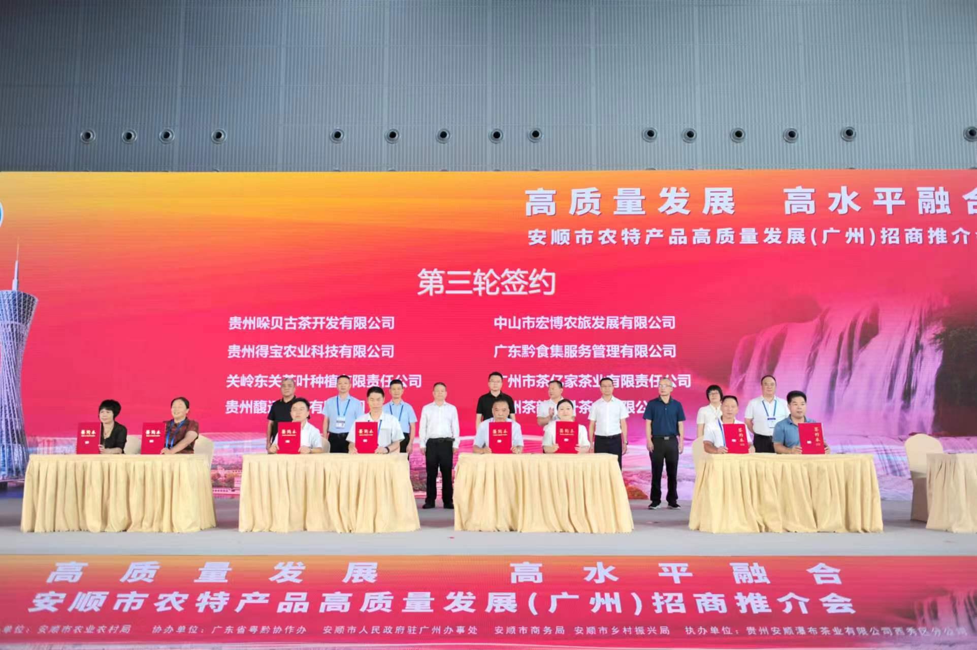 签约仪式上,14家广东企业与安顺市农业农村局签订合作协议。签订招商项目2个,签约金额达2.12亿元;签订供销协议12项,签约金额达1.27亿元。