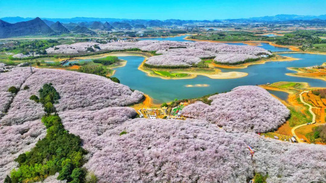贵安樱花园位于贵安新区高峰镇,原为樱花苗圃种植园地,种植面积2.4万亩,历时多年逐步形成春日赏花胜地,被誉为“蓝色星球上最美的樱花园”。近年来,贵安樱花园以非景区形式向群众免费开放,吸引了来自五湖四海的游客,已经成为新区展示生态之美、人文之韵的重要窗口,成为贵州省一张靓丽的名片。