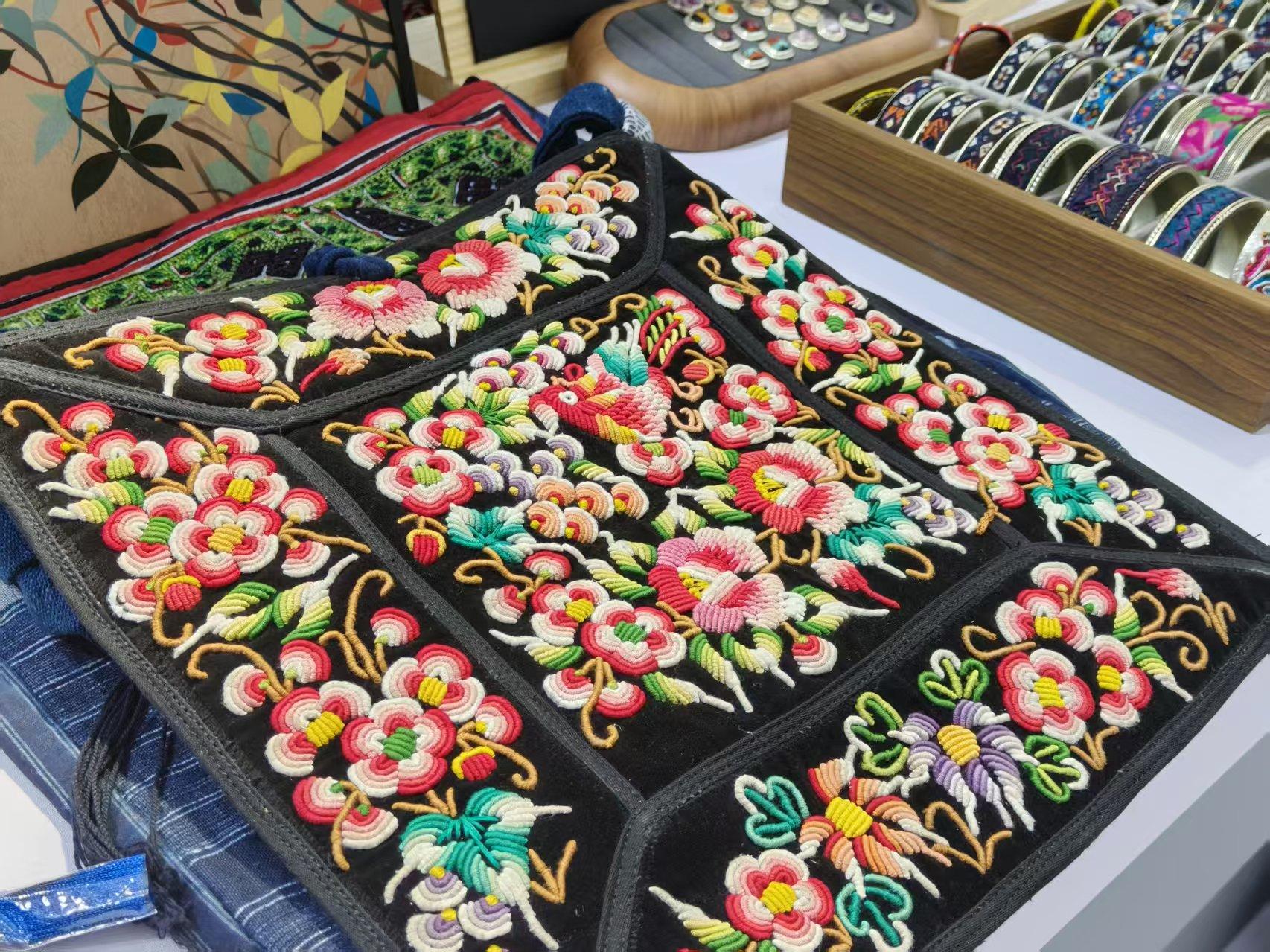 贵州省施秉县舞水云台旅游商品开发有限公司的苗绣工艺品针法精巧、色彩丰富