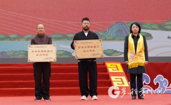 舞台上,舞蹈《影舞·绛河》演绎出酒与河的共生,铿锵朗诵的《赤水河赋》则是颂扬出赤水河的地理人文与酒道精神。随后,祭河仪式正式开始,分为“灵河取水、迎接圣水、敬献花篮、典礼祭水”四个篇章依次进行,以赤水之礼,敬自然之恩,愿赤水酱香,永续绵长。仪式结束后,大会还举行了酒师节表彰活动,对全市11名优秀酒师和13名先进班组长进行表彰;为贵州远明中厚酒业有限公司、贵州贵福酒业有限责任公司颁发赤水市酒旅融合试点单位牌匾;贵州长征文化旅游(集团)有限公司发布酒旅融合精品线路。