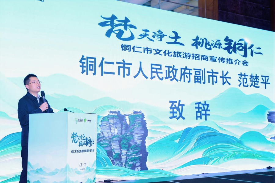 范楚平在致辞中表示,此次活动不仅是一场文旅推介,更是一次诚挚的“走亲”与“串门”,是与广州新老朋友面对面的交心之约。并用:“一个被大湾区持续青睐的铜仁,一个体验卓越、‘可售卖性’强的铜仁,一个愿携手同行、共拓蓝海的铜仁”三组关键词,向大家呈现一个真实、独特、充满活力的铜仁,既描绘了铜仁文旅的壮丽画卷,更饱含着对粤黔协作的深切期许。同时邀请广东朋友,亲赴铜仁,考察线路,体验山水。