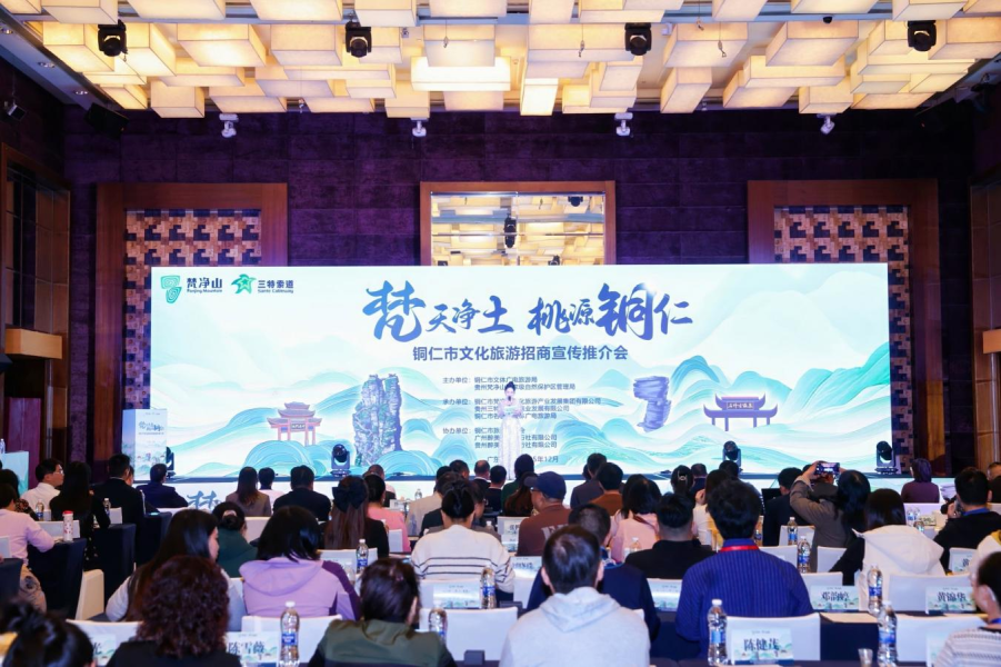 2025年12月3日,“梵天净土·桃源铜仁”铜仁市文化旅游招商宣传推介会在广州成功举办。铜仁市人民政府副市长范楚平、广州市文化广电旅游局、天河区文化广电旅游局相关负责人,铜仁市文体广电旅游局、梵净山管理局、梵净山文旅集团、三特旅业公司代表,以及碧江、江口、石阡、印江、德江五个区县文旅部门,粤黔两地旅行商、文旅投资企业及媒体代表等140余人共聚一堂,畅叙协作、共谋发展。