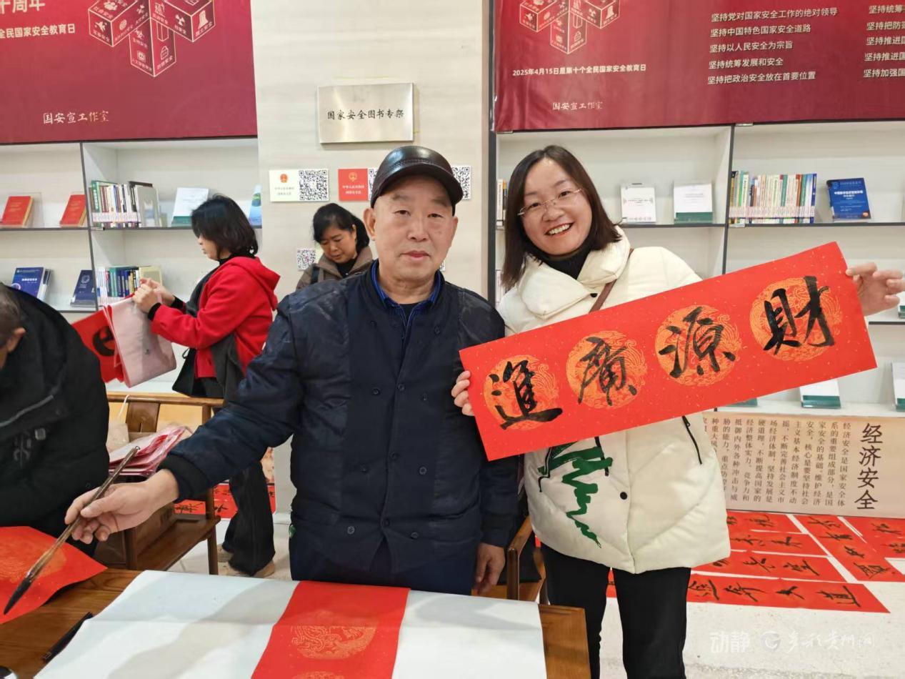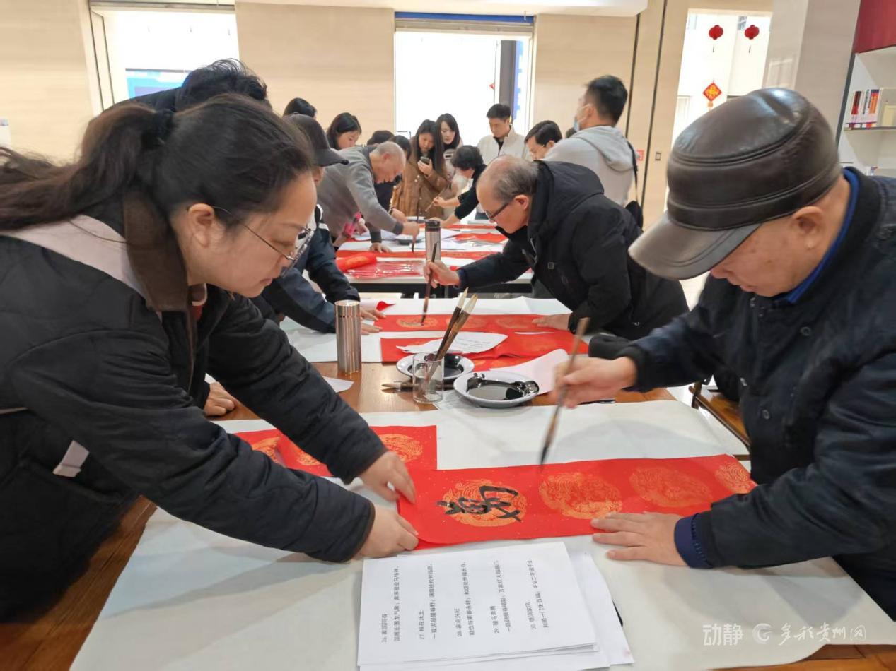 活动现场墨香与花香交织,组成一幅最动人的新年图景!贵州省诗词楹联学会的老师们挥毫泼墨,200副饱含美好期许的对联免费赠予读者;不少市民亲自提笔,在红纸上书写新春祝福,或临摹宋词名句字帖,把满满的宋韵墨香带回家。