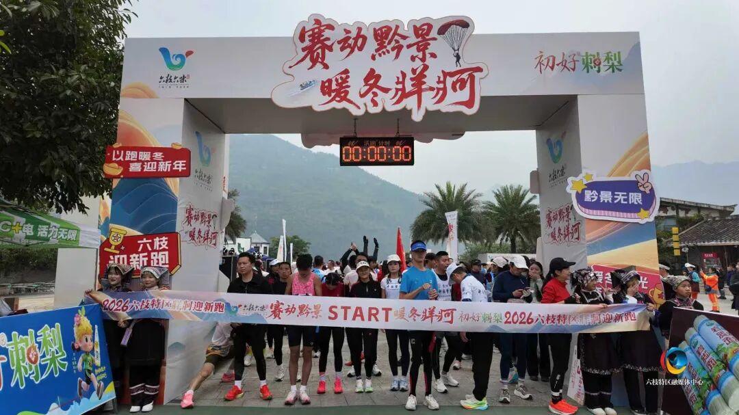 1月11日,由六盘水市文体广电旅游局、六枝特区人民政府主办,六枝特区文体广电旅游局、六枝特区牂牁镇人民政府承办的“赛动黔景·暖冬牂牁”2026六枝特区迎新跑在风景如画的牂牁江畔开跑。来自省内外的运动爱好者沿江驰骋,用奔跑的激情点亮新年的活力征程。