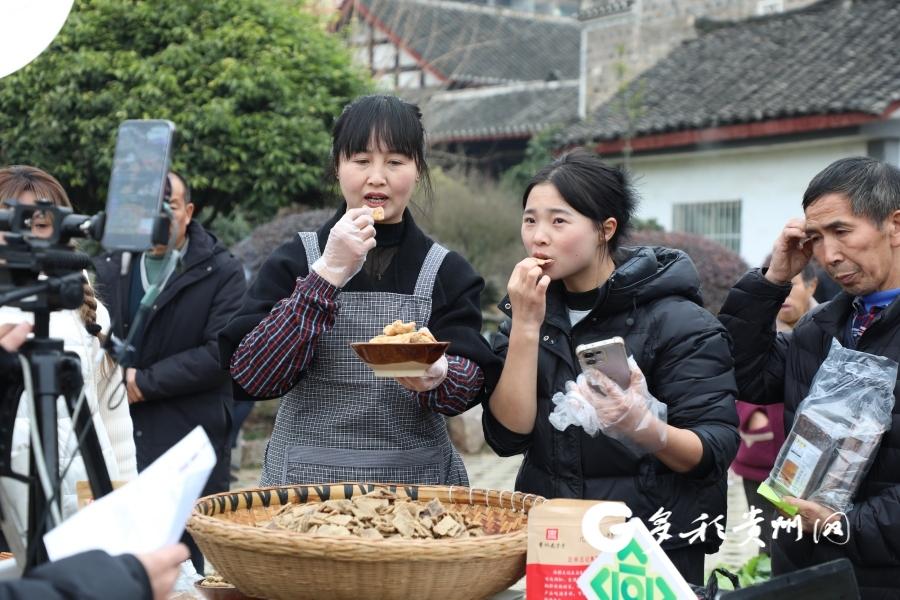 镜头前,主播佳佳热情洋溢地向网友推介尚嵇特色农产品,“家人们,今天我们来到贵州遵义尚嵇镇,现场带大家感受地道山乡风味,这些可都是本地独有的好物……”