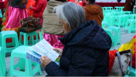 活动现场还设置了文明实践宣传展位,志愿者们向现场观众发放移风易俗倡议书、文明过节宣传单,耐心解答关于红白事操办、家风建设等方面的咨询,让文明理念走进群众心中。