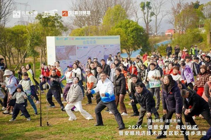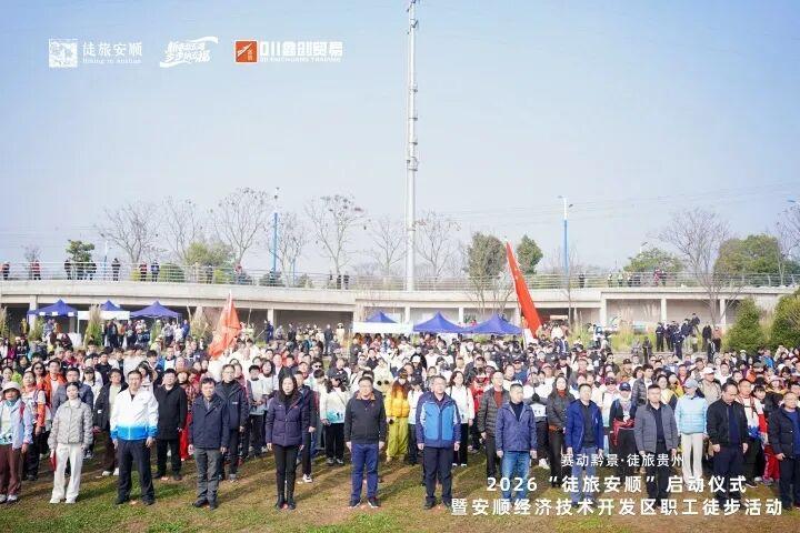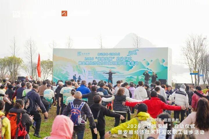 春启新程,福聚安顺。1月17日,“赛动黔景·徒旅贵州”2026徒旅安顺“新春游五湖·步步纳五福”活动正式拉开帷幕,来自全国各地的近千名徒步爱好者齐聚安顺,以活力脚步丈量山水之美,以满心热忱解锁新春福气。