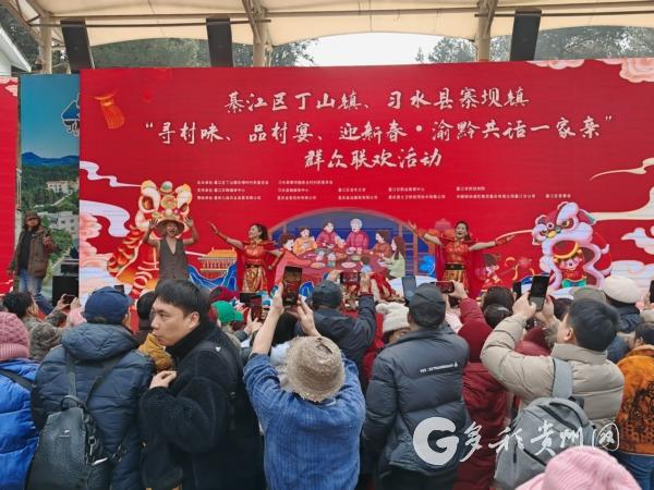 山水相连,人文相通!1月26日,綦江区丁山镇与习水县寨坝镇携手在丁山镇石佛广场,上演了一场“寻村味、品村宴、迎新春·渝黔共话一家亲”群众联欢活动,两地乡亲欢聚一堂,在欢声笑语中解锁跨区域的温情年味。