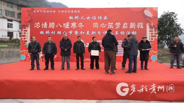 整场活动以趣味互动凝聚人心,以典型表彰引领风尚,既延续了腊八传统民俗,又深化了新时代文明实践内涵、汇聚了乡村发展合力。板桥村通过这场充满温情与活力的聚会,让邻里之情更醇厚,让乡村之心更团结,为新一年的振兴注入了奋进动力,生动呈现出文明和谐的新时代乡村风貌。