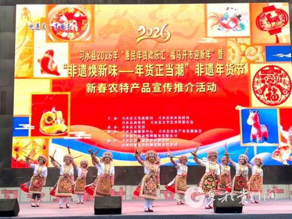 1月28日,“悦遵义·享暖冬”习水县2026年“惠民年货欢乐汇·福马开市迎新年”暨“非遗焕新味——年货正当潮”非遗年货节在希望城时代广场正式拉开帷幕。本次活动融合非遗展示、文艺展演、年货促销、民俗体验于一体,为市民打造一个充满传统文化气息与温暖年味的新春购物盛宴。