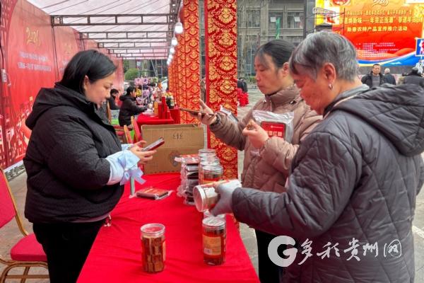 活动现场,非遗展销区汇聚了20余项匠心独具的习水非遗技艺产品。土城苕汤圆、温水牛肉干、隆兴红糖、黔北腊肉、习酒等琳琅满目的传统美食与工艺,吸引市民驻足品尝、选购。新春年货节农产品展销专区同样人气高涨。贵州一品红、习水裕和食品、金泓农业等16家本地企业带来辣椒、腊肉、羊肉、茶叶、蜂蜜等特色农产品,并以市场价5.5折至8.5折不等的惠民折扣诚意促销。
