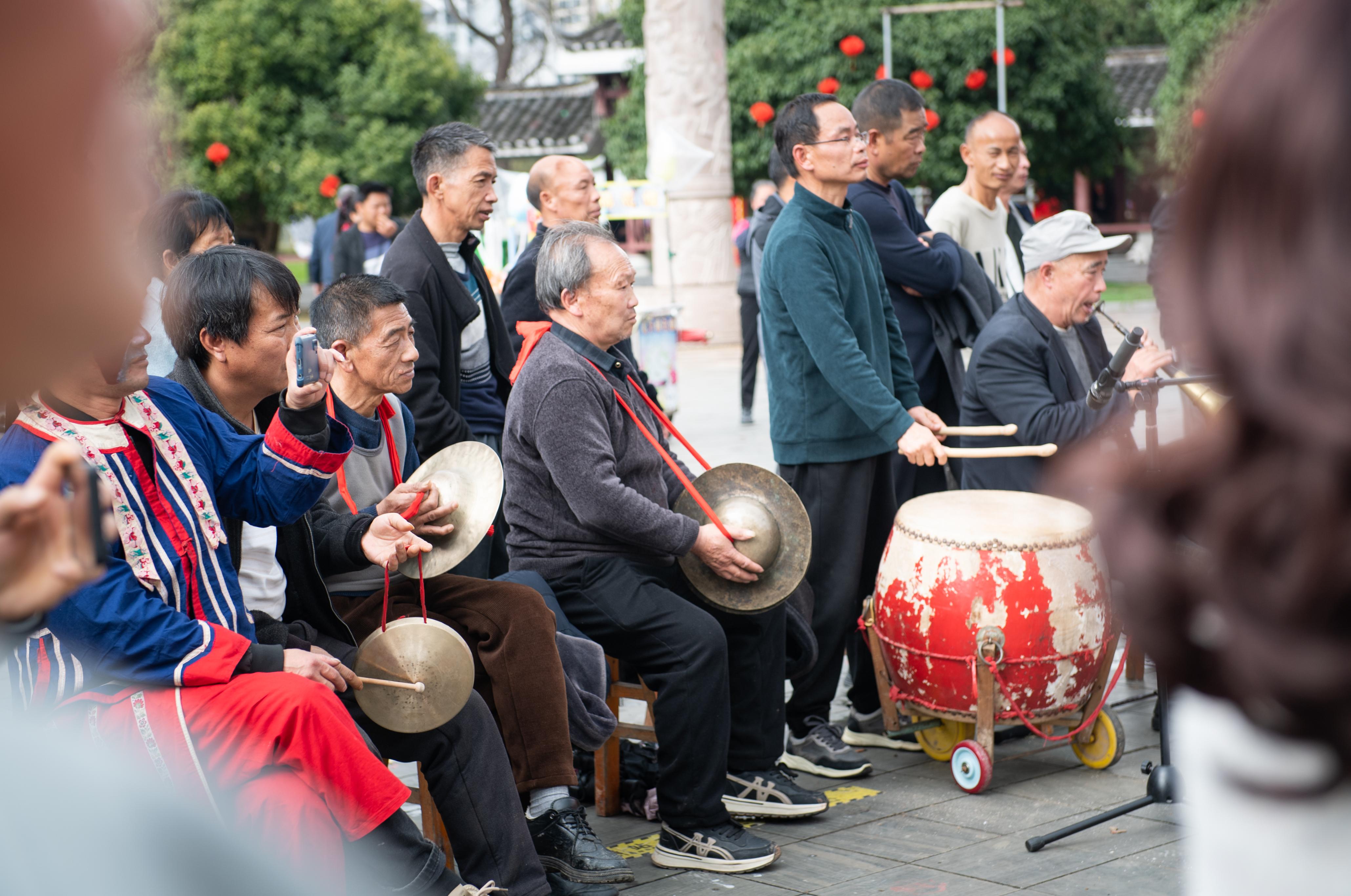 天柱县城腾龙广场,忙碌的侗戏乐器队