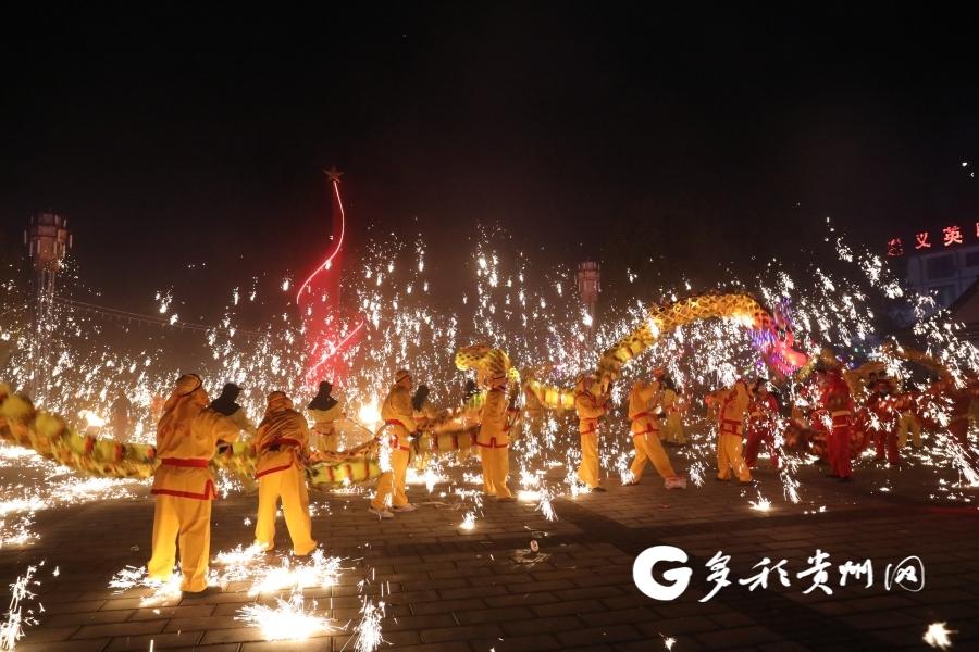 “我们组织舞龙活动,是为了营造全镇过年的热闹氛围,让居民们感受节日的欢乐。白天组织群众游街,晚上开展舞龙活动,而且舞龙期间,我们会在三个地点同时进行打铁水花和燃放烟花。”播州区枫香镇商会会长罗天学说。