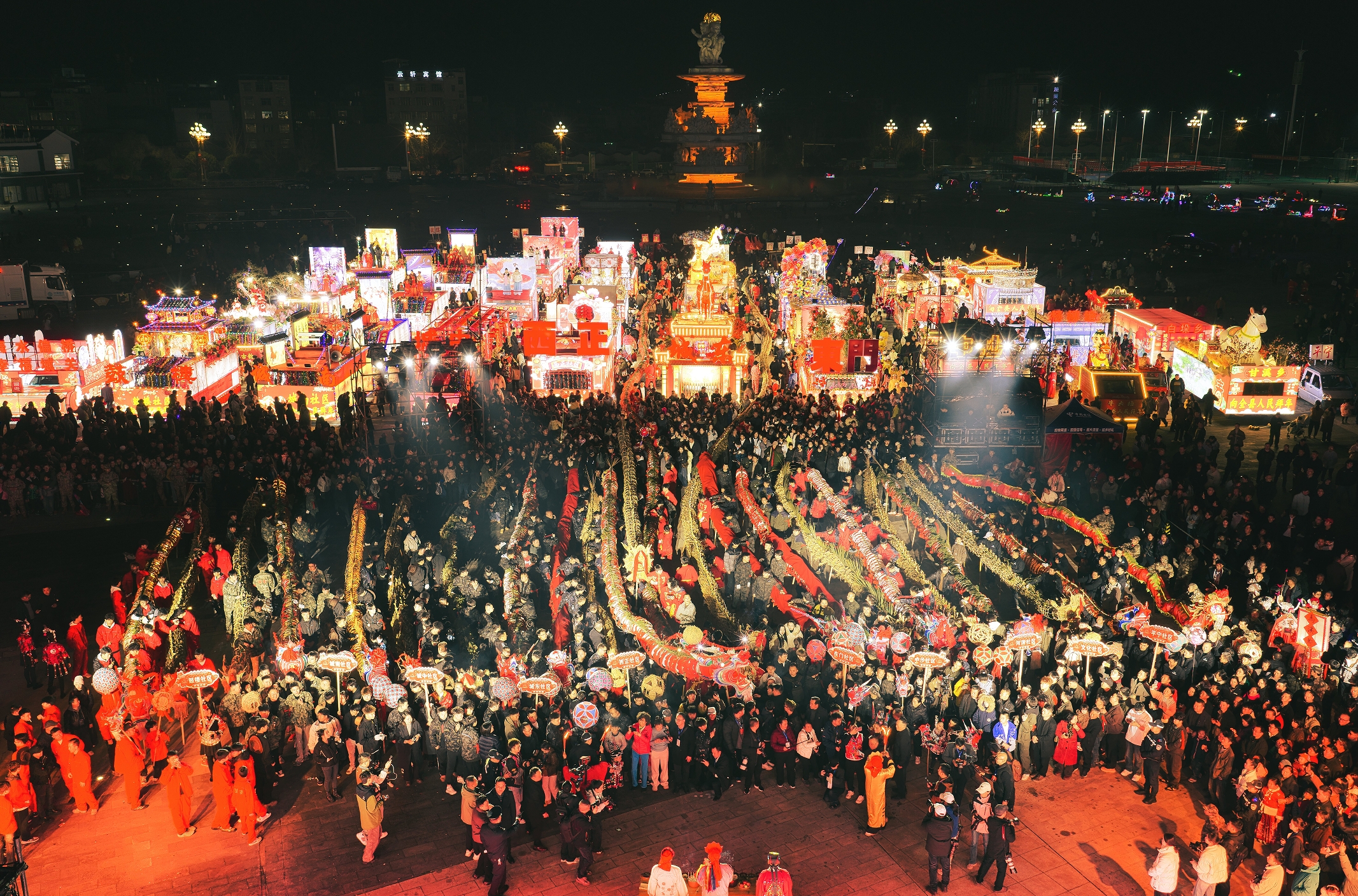 施秉县2026年“骏马迎春游施秉·百龙聚会闹新春”龙灯展演系列活动正式启幕(刘晓源 摄)