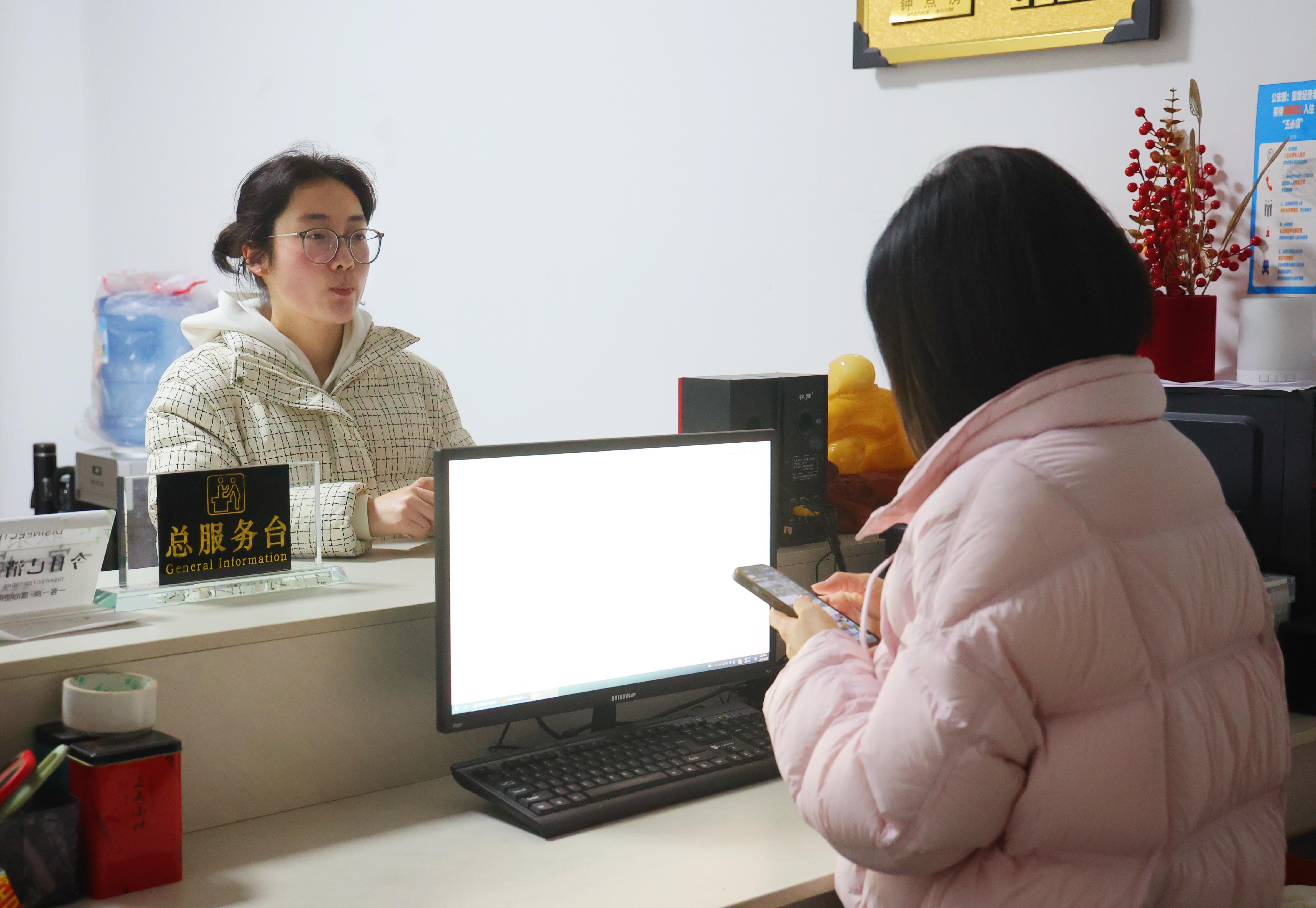 陕西游客武女士在办理民宿入住