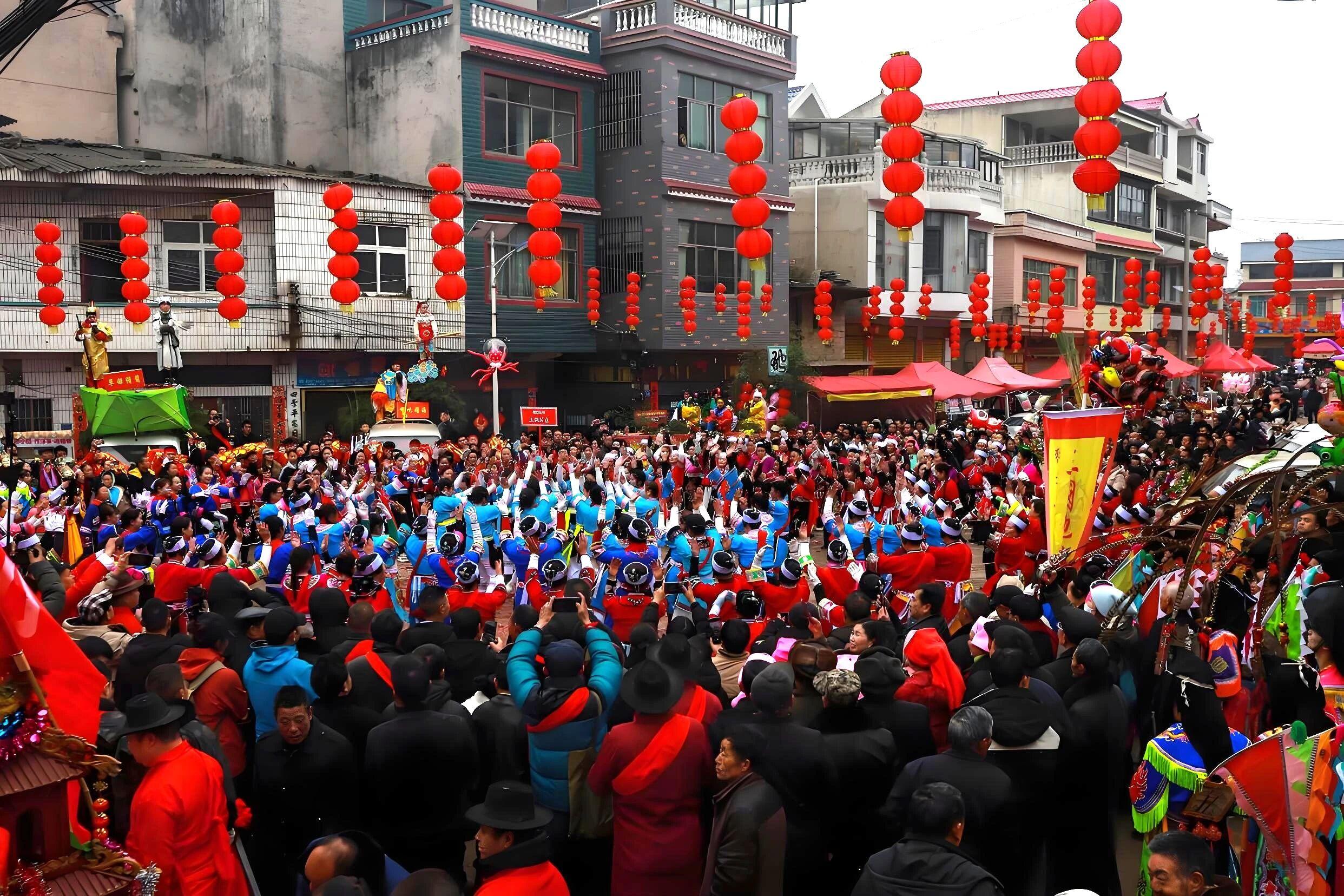 在贵州安顺一带的屯堡村寨,元宵节保留着抬亭子的传统习俗。这是一种古老的民间艺术形式,由数名壮汉抬着装饰华丽的亭子,亭子里坐着装扮成历史人物或神话传说人物的孩童,在锣鼓声中巡游表演,祈求平安吉祥。