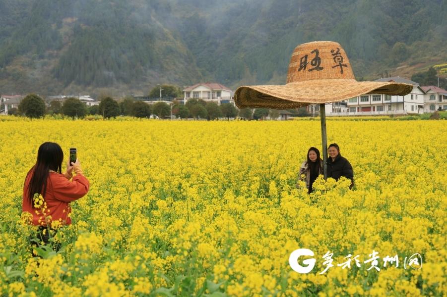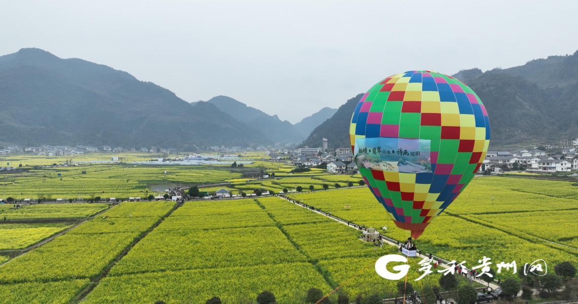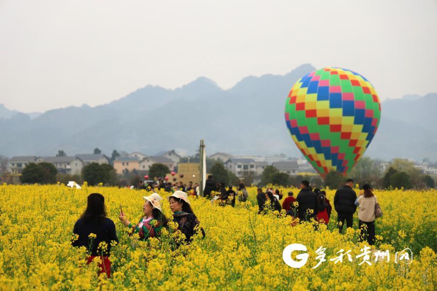 “今天是和朋友特地过来打卡的,一下车就感觉整片的油菜花海太美了,拍照非常出片,还有热气球、咖啡馆,都很有特色。”来自遵义的游客王新月笑着说。