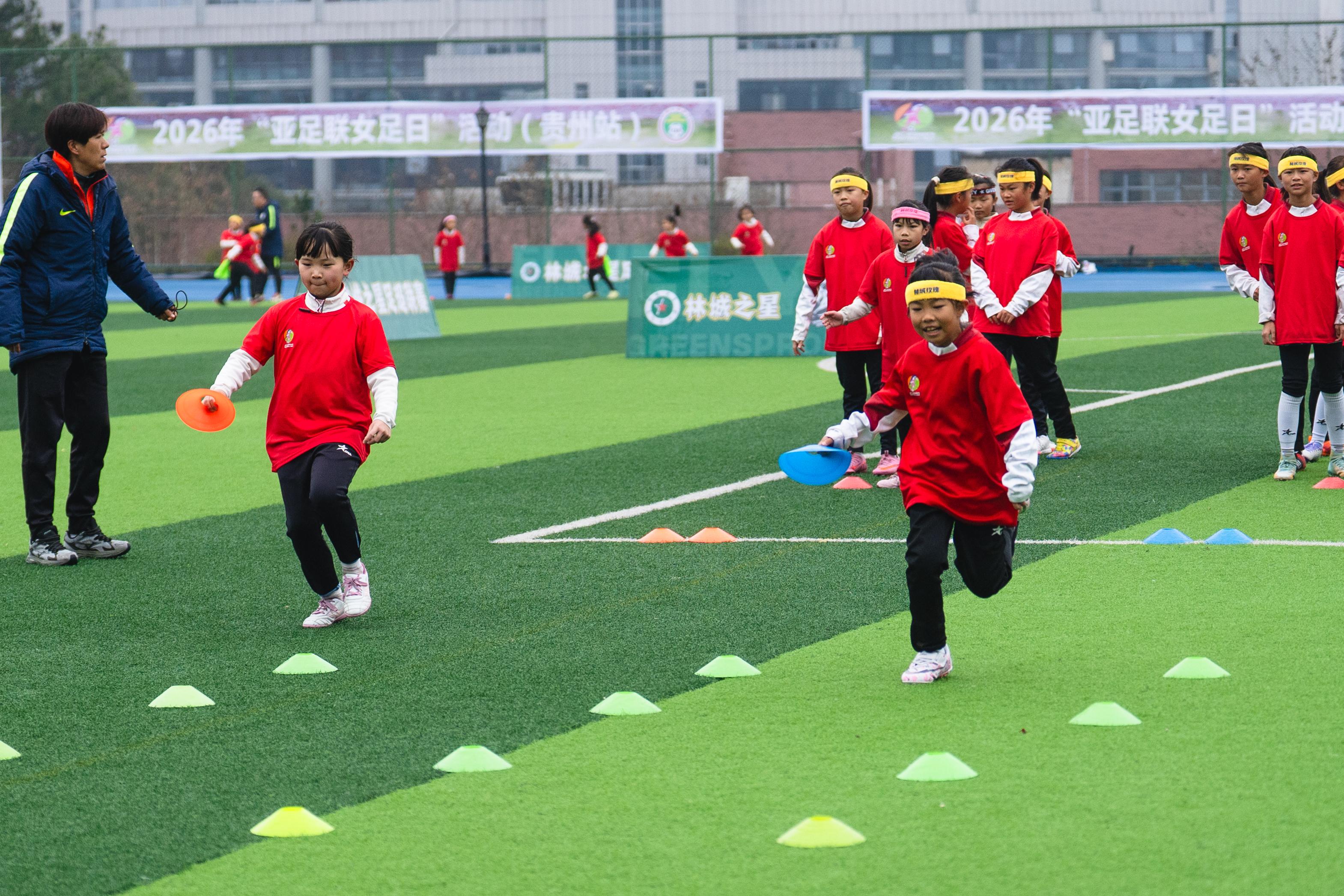 3月8日国际妇女节,由亚洲足球联合会、中国足球协会主办,贵州省足球协会、贵阳市足球协会支持,林城之星体育俱乐部承办的2026年“亚足联女足日”活动(贵州站)在贵州开放大学足球场举行。来自贵阳林城之星及多所学校的近200名7到12岁学龄女童如约而至,用满腔热情诠释对足球运动的纯粹热爱。