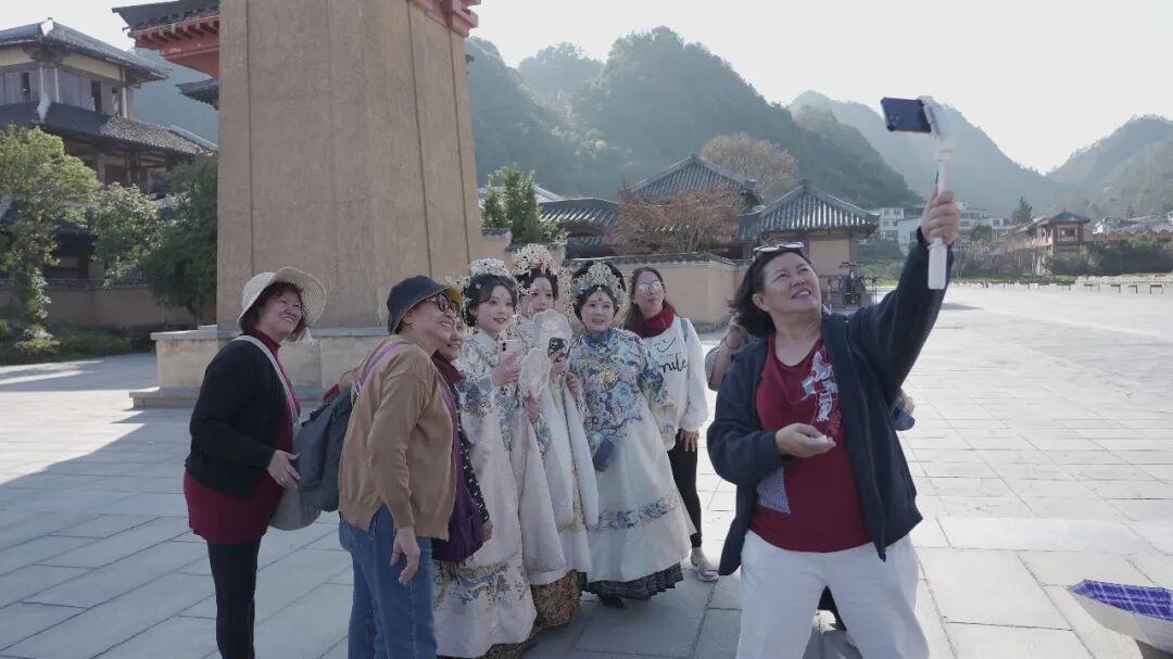 首航团抵达后,率先前往都匀秦汉影视城游览,近距离感受古风影视文化魅力;而后,首航团欢迎仪式在都匀石板街举行,现场通过特色民俗展演、热情迎宾礼仪,展现黔南对东南亚入境游客的高度重视与诚挚欢迎。