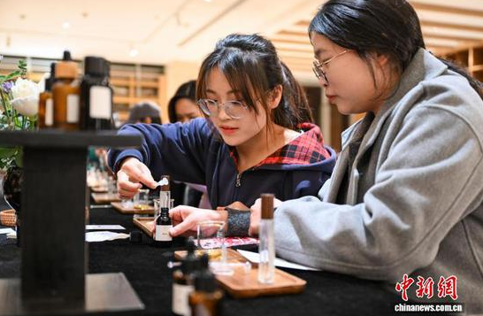 图为参观者在美术馆之夜活动中制作香氛。中新社记者 瞿宏伦 摄