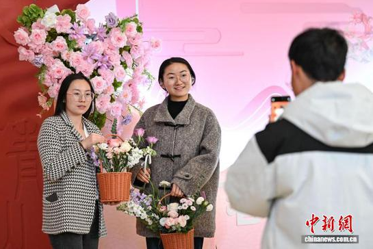 图为参观者在美术馆之夜活动设置的“春日来信”装置前打卡。中新社记者 瞿宏伦 摄