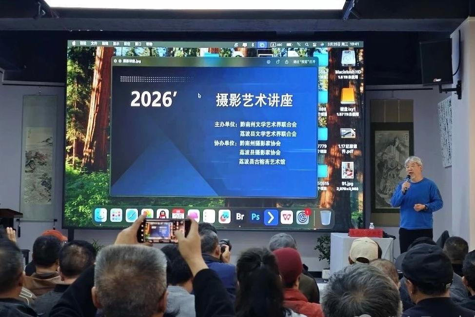 活动还邀请著名纪实摄影师、第十届中国摄影金像奖获得者卢现艺,为70余名本土摄影爱好者及文艺工作者开设讲座。他从获奖作品《寻找祖灵之路》的构图逻辑,讲到手机摄影的实战技巧,倾囊相授。