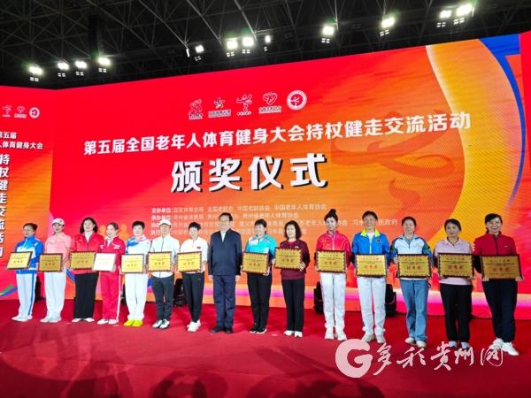 4月17日,第五届全国老年人体育健身大会持杖健走交流活动圆满完成各项赛事,在习水体育馆举行颁奖仪式,对在各项比赛中取得优异成绩的个人和团队进行颁奖。