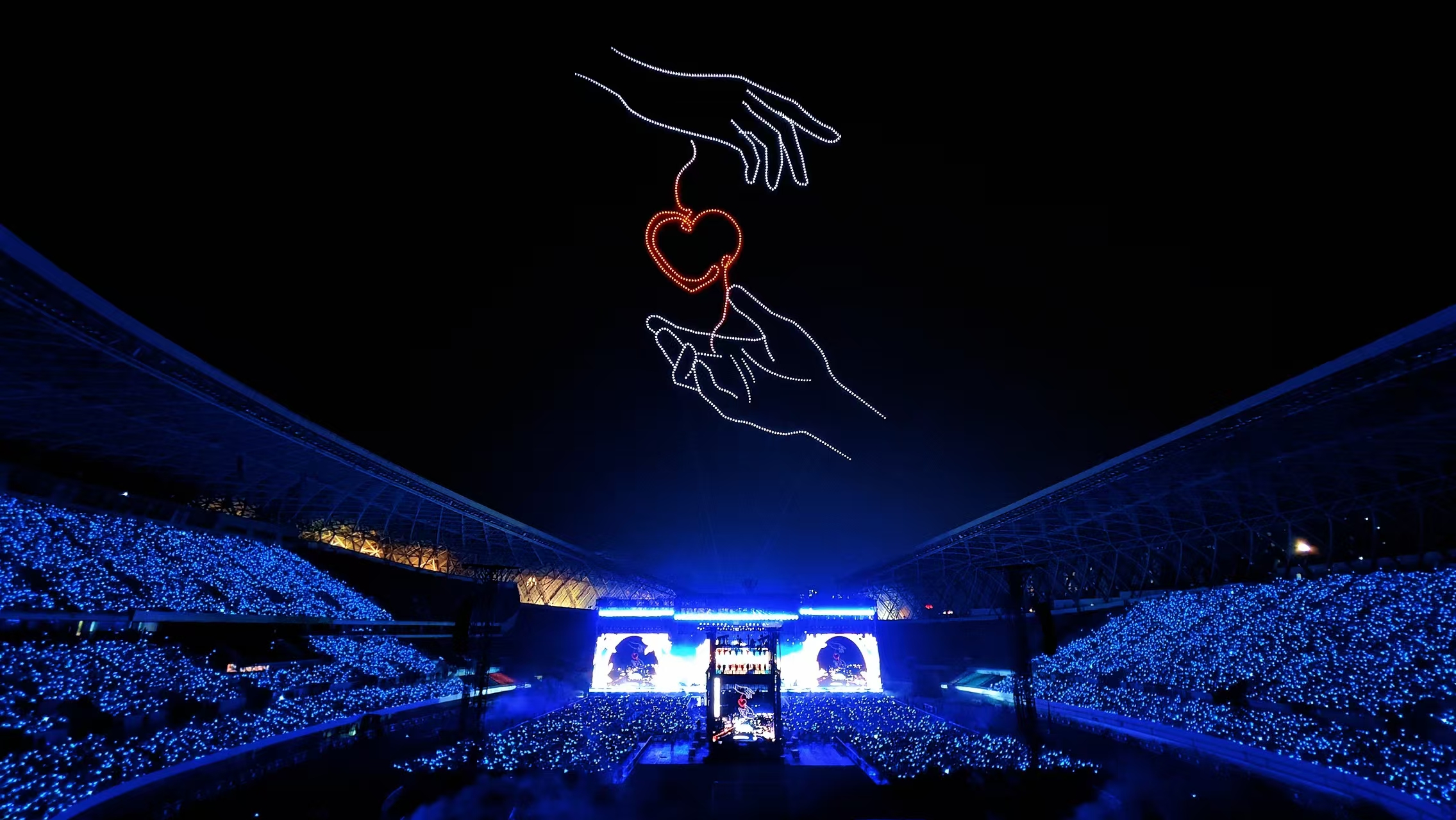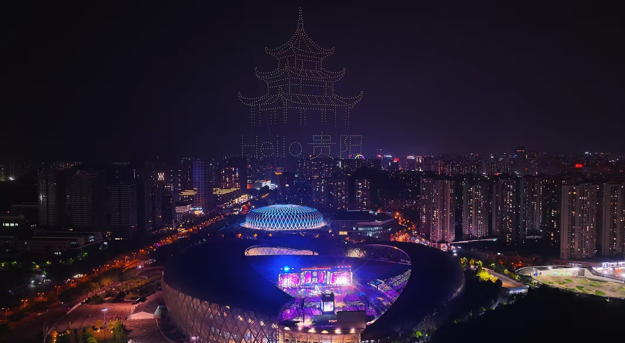 4月18日的贵阳奥体中心,歌声与星光交织,光影与激情共舞。当周传雄的经典旋律响彻场馆上空,千架无人机悄然升空,如萤火虫般汇聚成一片流动的光海。它们时而化作跃动的音符,时而拼出“hello贵阳”“谢谢贵阳”等巨型字样,与舞台上的歌手形成天地呼应。这是贵阳市低空产业发展有限公司自有无人机编队的首次自主执飞表演,也是贵州首次由本土国企以“自有设备、自主编程、自主保障”全链条能力完成的无人机光影秀。
