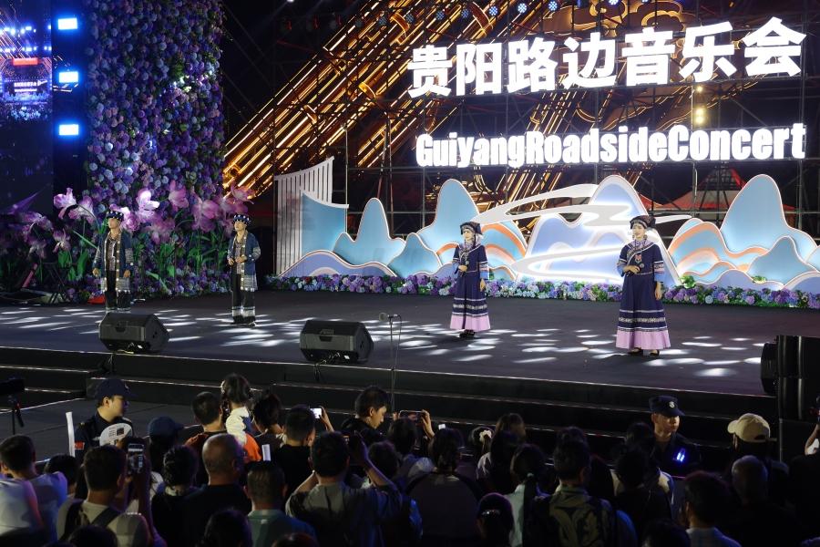 随着活动推进,贵阳路边音乐会罗甸专场正式开启,现场氛围持续升温,精彩节目轮番上演。其中,罗甸布依特色歌手演唱的《美美大小井》《挽留酒歌》向现场观众展现了罗甸浓浓的民族风情和布依文化特色,台下观众跟随旋律互动,纷纷为罗甸的文化魅力点赞。
