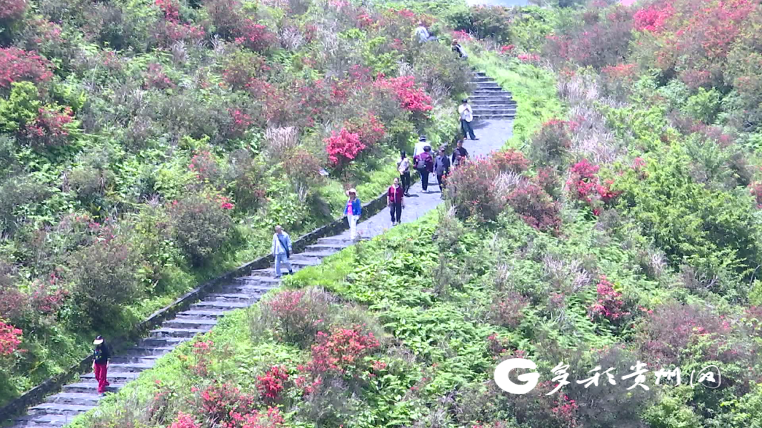 游客石永婷举着手中的照相机,对着满山遍野红艳艳的映山红不停的拍照,满怀喜悦地说:“遵义播州区洪关太阳坪景区的映山红太漂亮了,非常适合拍照打卡,是一个旅游的好地方!”