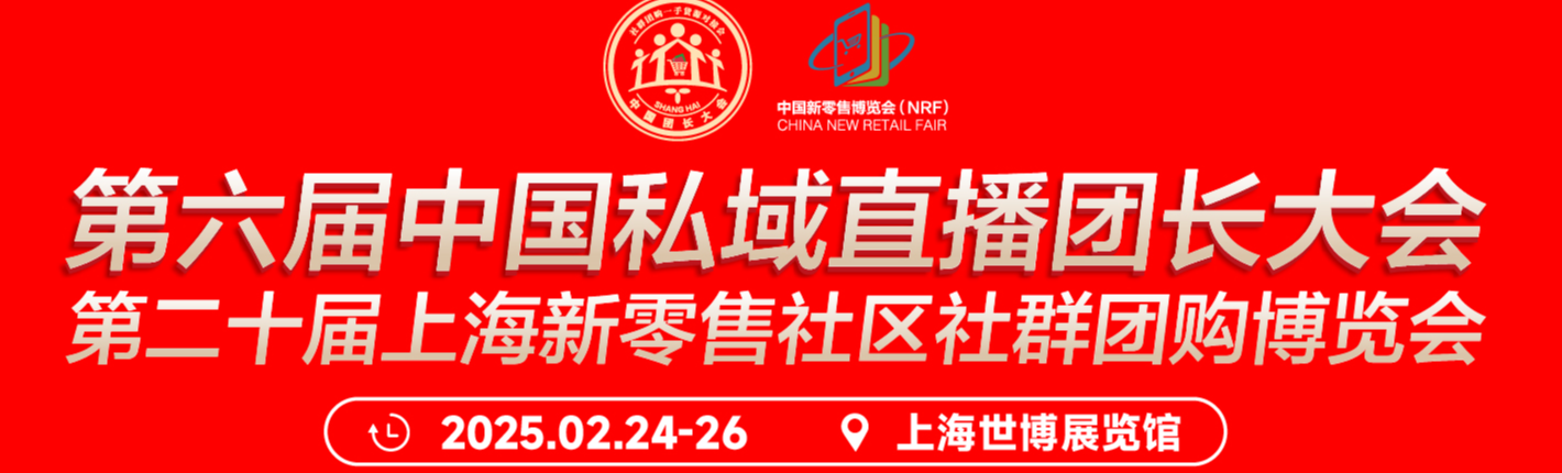 第六届中国私域直播团长大会暨第二十届上海国际新零售社区社群团购博览会将于2025年2月24-26日在上海世博展览馆继续举办。