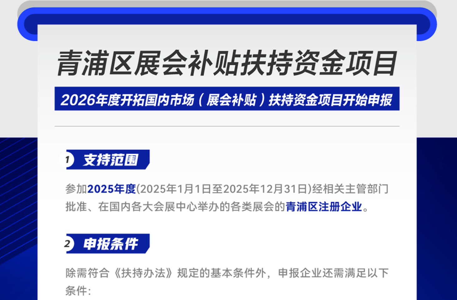 参加2025年度(2025年1月1日至2025年12月31日)经相关主管部门批准、在国内各大会展中心举办的各类展会的青浦区注册企业。